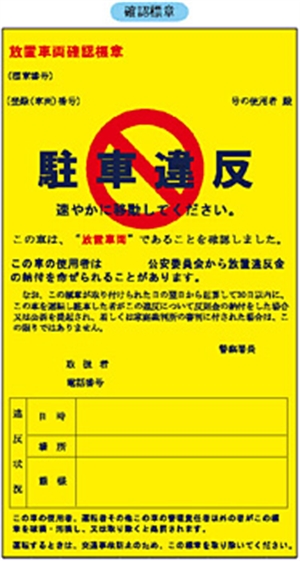 駐車違反をした場合、この写真のステッカー?が貼られて、後日自宅に違反金の納付書が送られてきます。